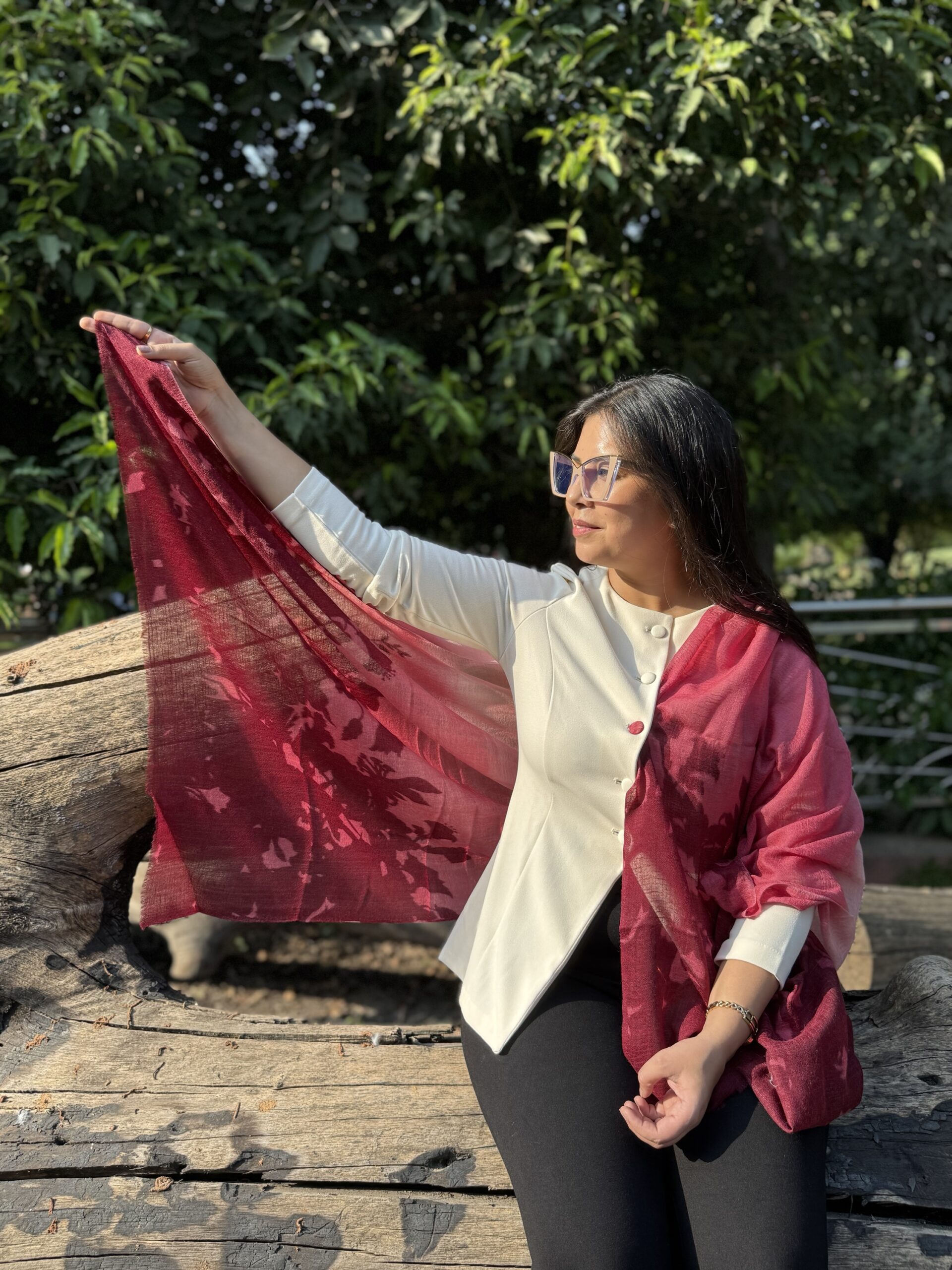Crafted in a rich silk-wool blend, this lightweight printed scarf offers effortless warmth and a refined, fluid drape. The gradient hues and subtle floral detailing create a timeless statement piece for every season.